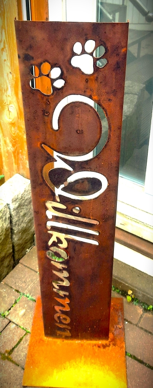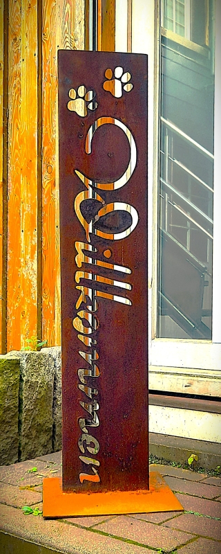 Schild Willkommen -geschwungen- mit Pfoten