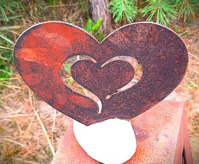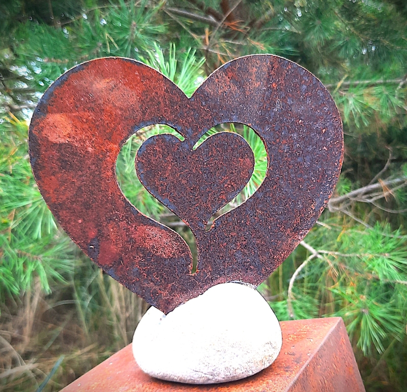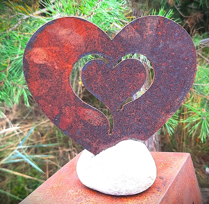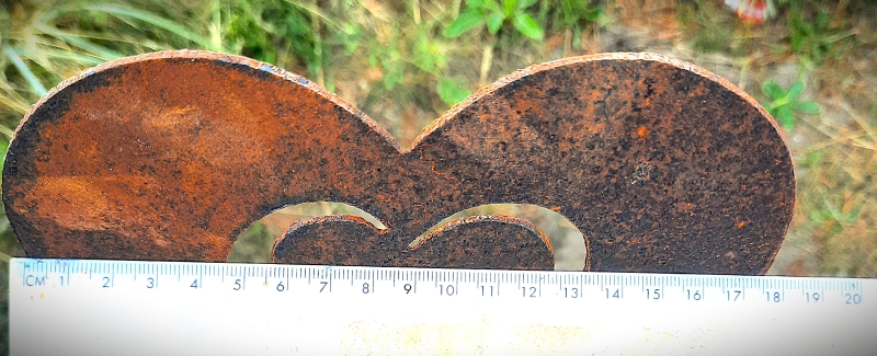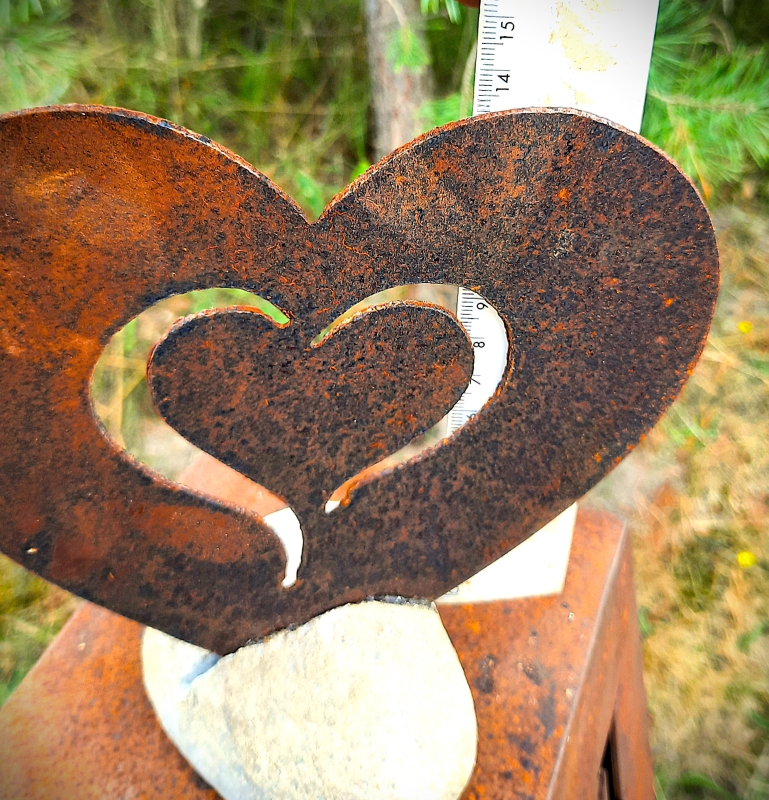 Das Herz ist circa 17,5cm Breit und ungefähr 14,5cm Hoch und hat eine Dicke von 1,5mm Baustahl.
