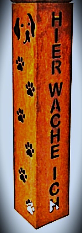 Säule Hier wache ich, Hundekopf mit Pfoten