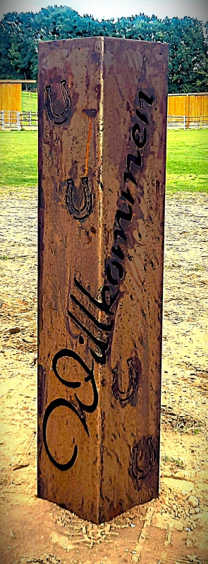 Säule Willkommen -geschwungen- mit Hufeisen