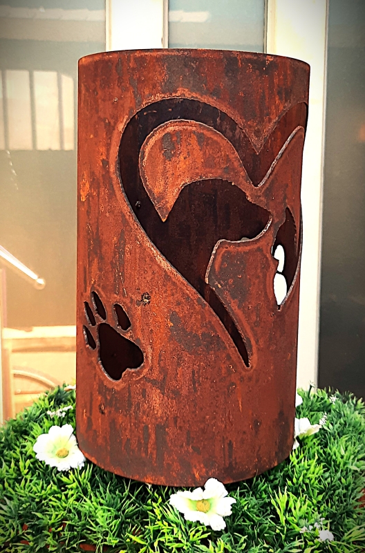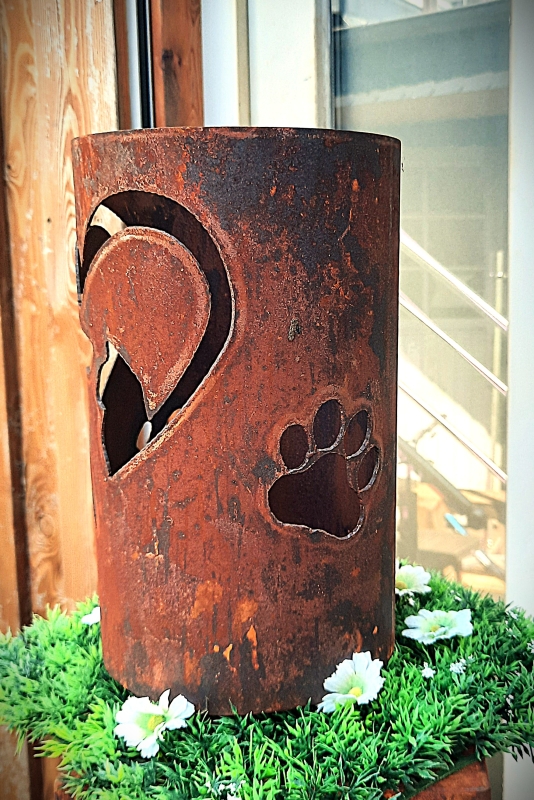 Windlicht Hunde- und Katzenkopf im Herz mit Pfoten