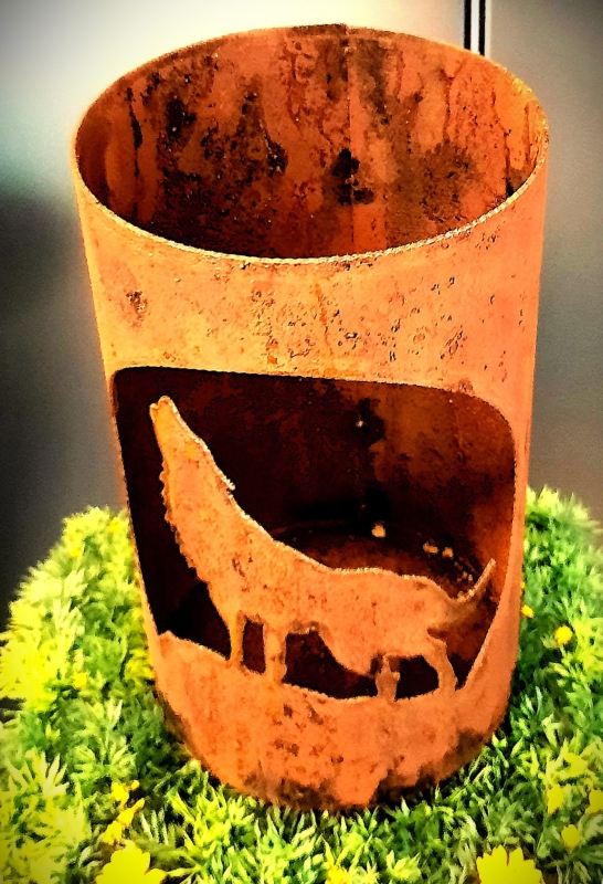 Windlicht Wolf im Mond